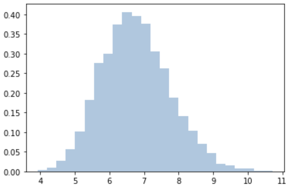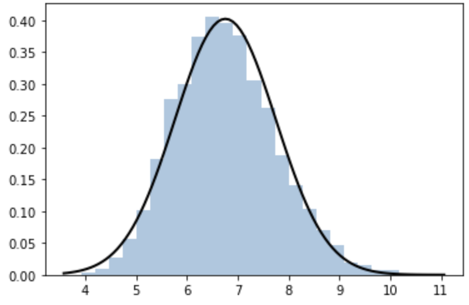 10000개의 샘플을 추출하여, 각각의 샘플의 평균값을 estimate_list에 넣는다.